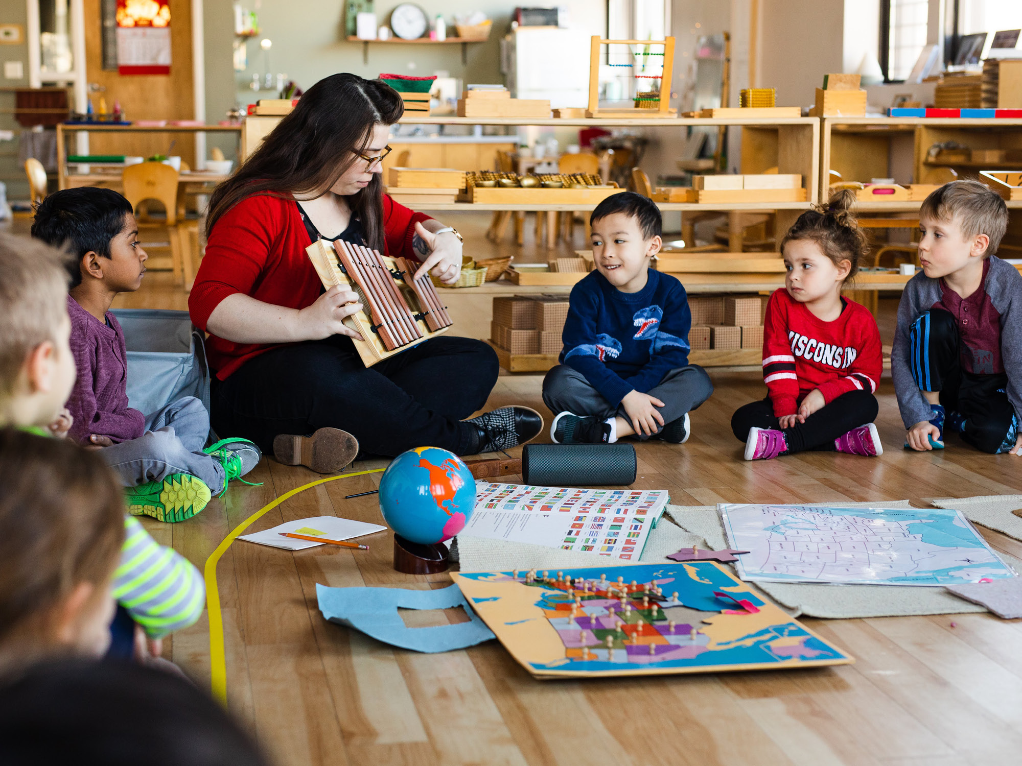 Academy students begin exploring the world of sound through music class in infancy. Pop into a nursery classroom and you’ll find our Toddlers working with small percussive instruments. Swing by a Primary class, and you’ll find a group sing-a-long. Stop by an Elementary class and you may see our students composing original music. Hang around after school for Ukulele Club and you’ll find young musicians jamming to their favorite songs in a fun, group environment. Overall, our program borrows the best from methods such as Orff Schulwerk, Suzuki, Kodály, and Dalcroze.