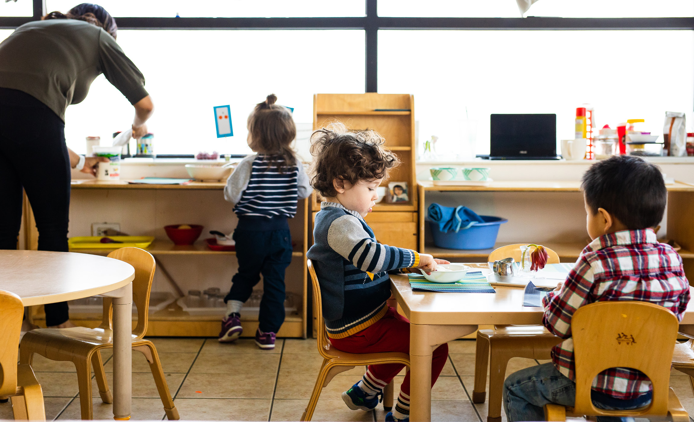 The Nursery program is fully accredited by the American Montessori Society and licensed by the Illinois Department of Children and Family Services. Each classroom has (at least one) credentialed Montessori lead teacher. Our large, spacious rooms and all-natural learning materials make our Nursery program feel like an extension of the home.