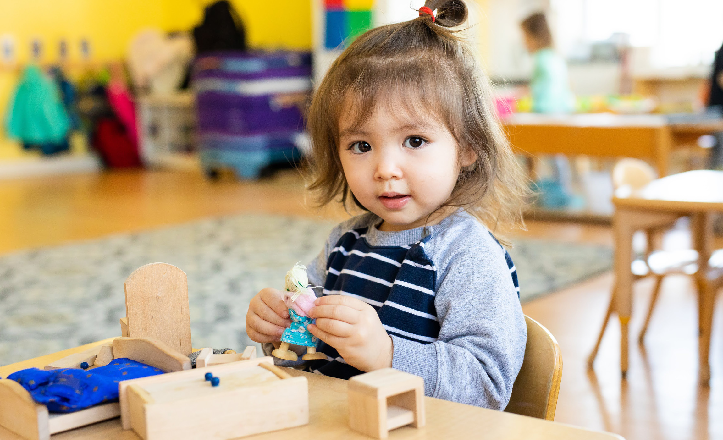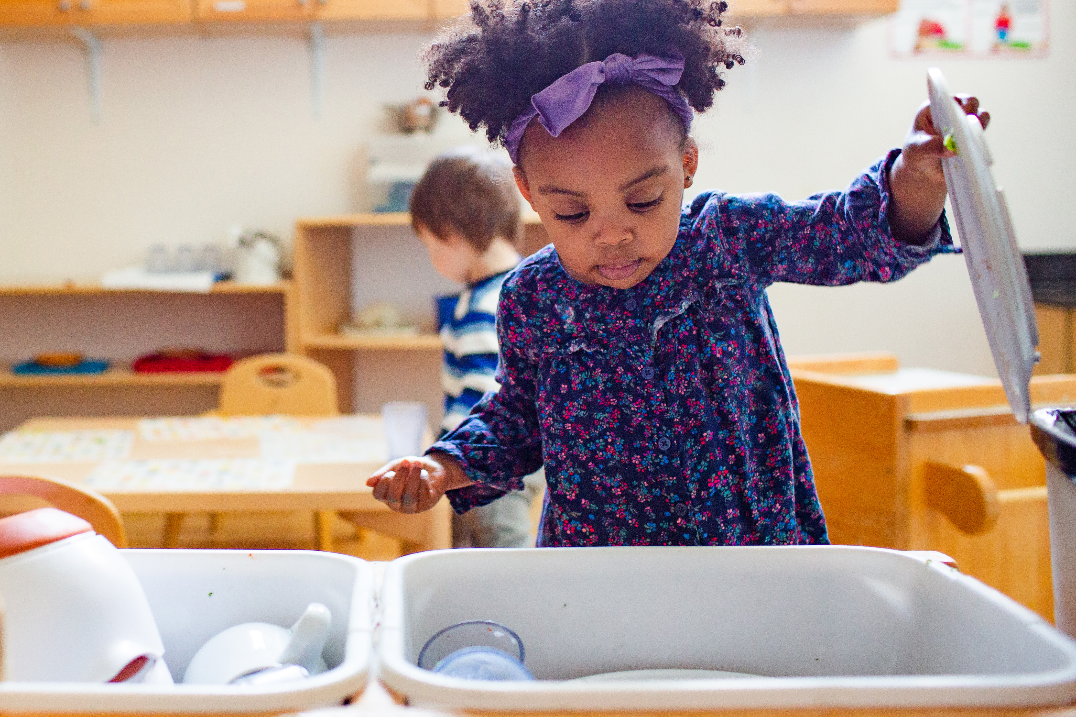 Our nursery level consists of students 6 weeks to 3-plus years of age. The classrooms are thoughtfully and beautifully prepared environments that meet the overall developmental needs of the youngest children in our school community. They are equipped with natural materials that promote discovery and self-directed learning to foster independence.