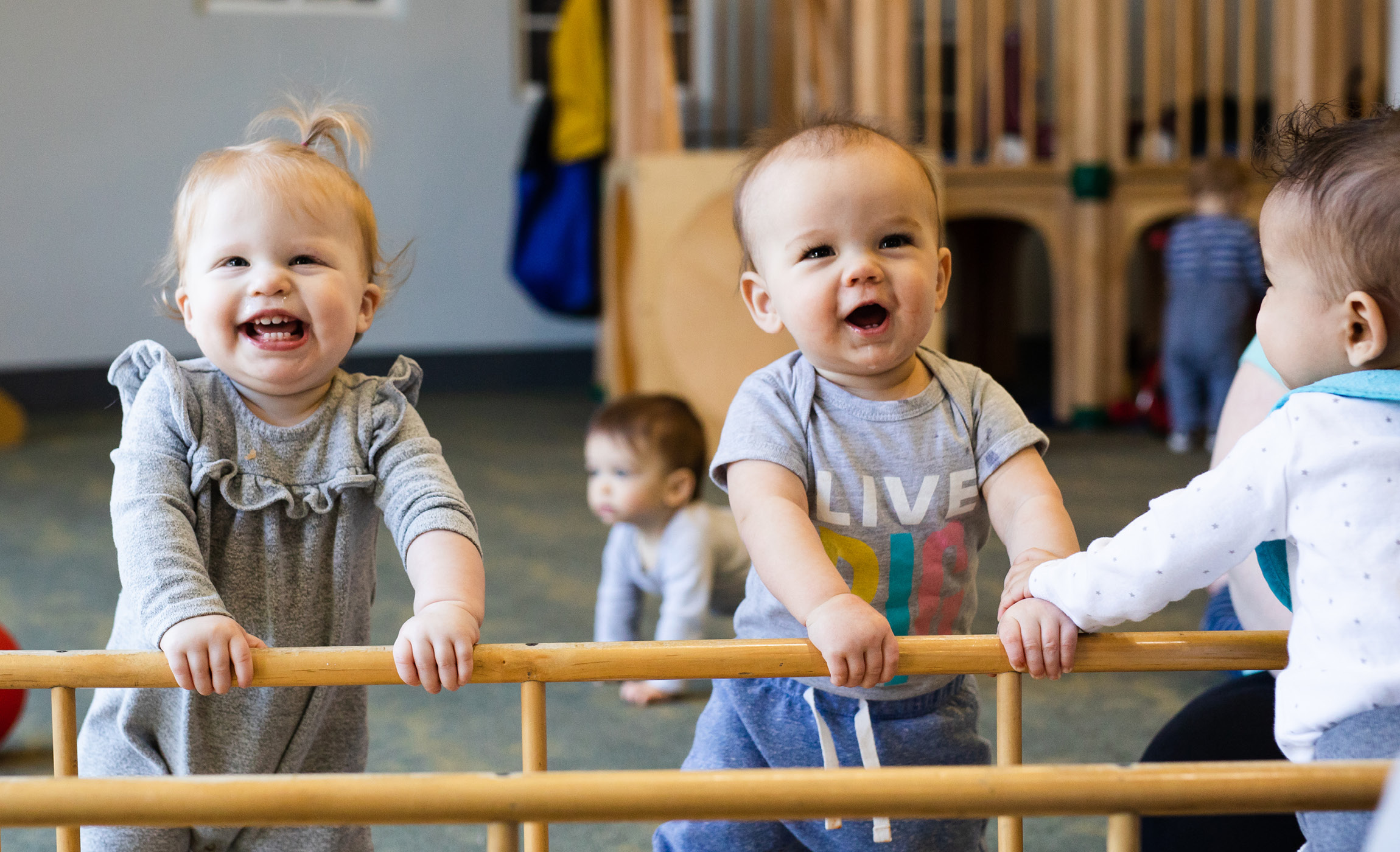 Our nursery classrooms are an extension of the home. Our nursery staff is warm, engaging, and friendly. Nurturing and Safety are our first priorities. The adults in the environment act as guides to support learning in the following areas: